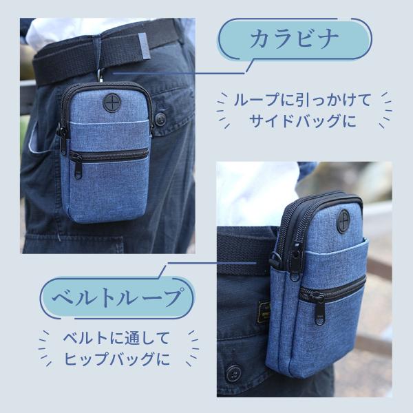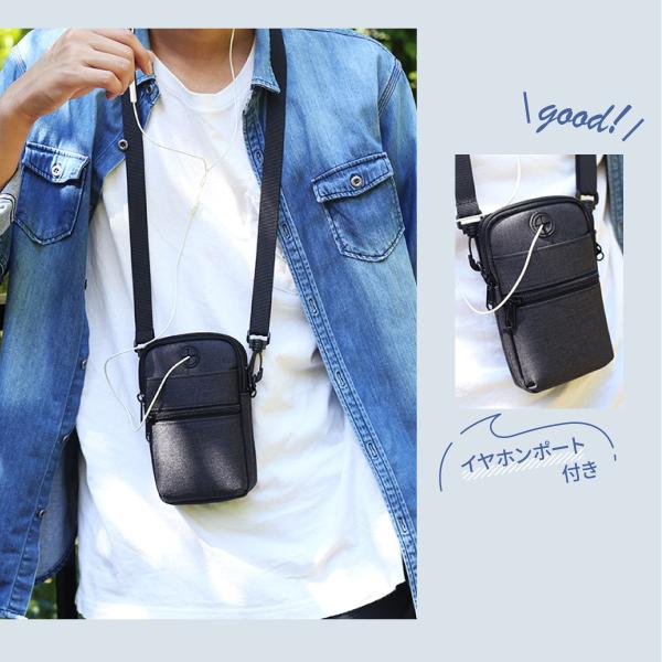 防水 多機能 カラビナ付き イヤホンポート付き 斜め掛け