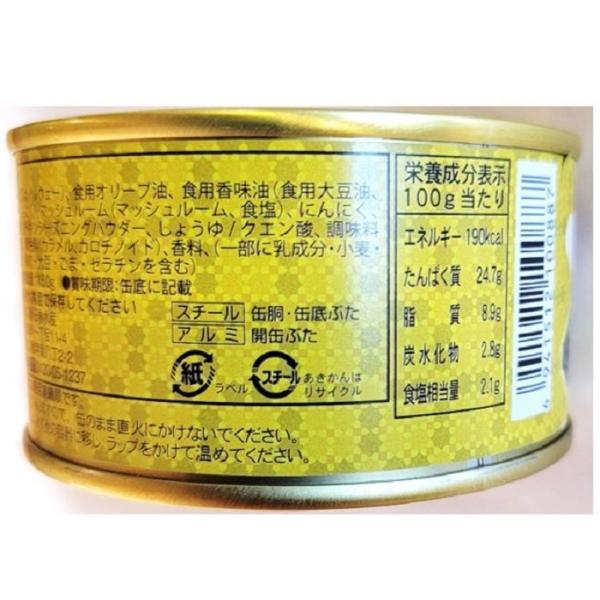 原材料名 :ひげ鯨(国産又は、ノルウェー産)、食用オリーブ油、食用香味油(食用大豆油、食用米油、にんにく)、マッシュルーム(マッシュルーム、食塩)、