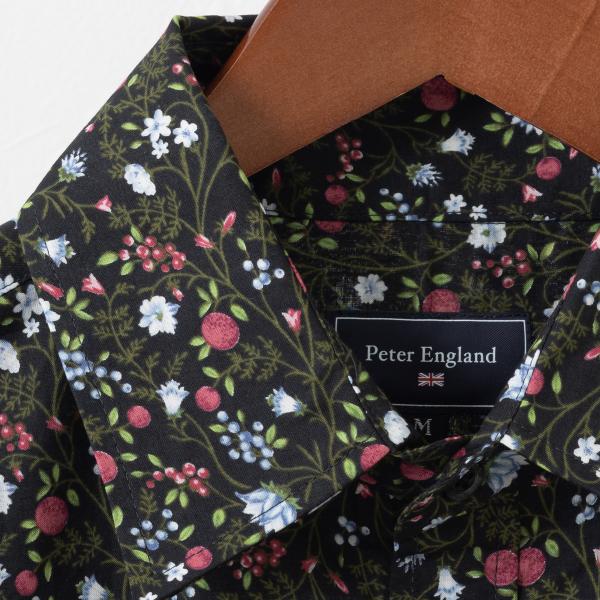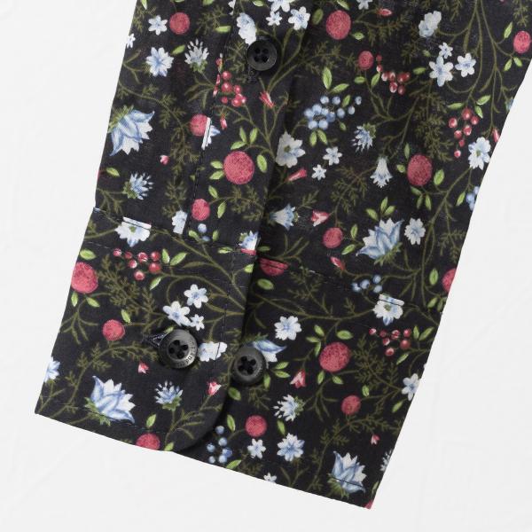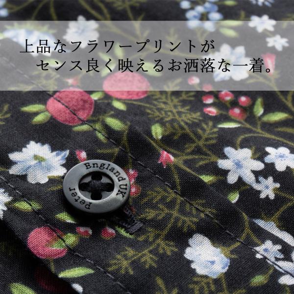 ピーターイングランド 英国老舗ブランド メンズシャツ UKデザイン 日本縫製 フラワープリント 花柄 ボタニカル ブラック コットン 長袖 男性