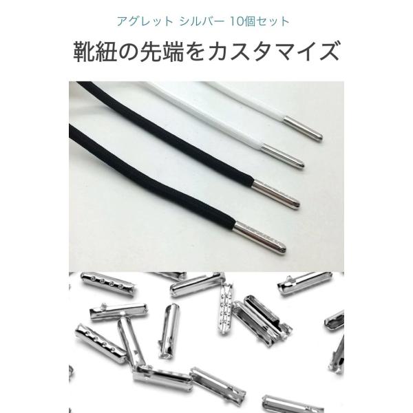 アグレット シルバー 10個セット 靴紐 先端 固定 カスタマイズ 靴ひも 金具 金属 シューズ アクセサリー ほつれ 補修 自作 DIY
