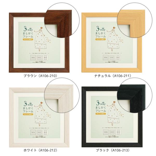 メール便 送料無料 3WAYましかくフレーム 15角 L判兼用マット付き 150×150mm 全6色 万丈 127×127mm 正方形 フォトフレーム 写真立て 額縁 刺繍 布