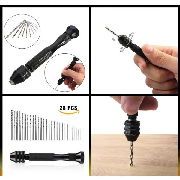 【並行輸入品】ハンドドリル ピンバイス 豪華28本付きセット ツイストドリル 穴あけツール 精密 手芸 木工 DIY工具 _