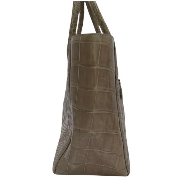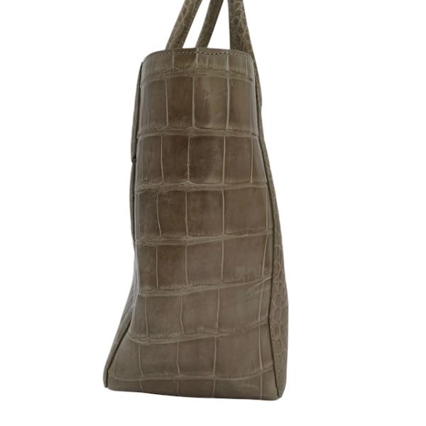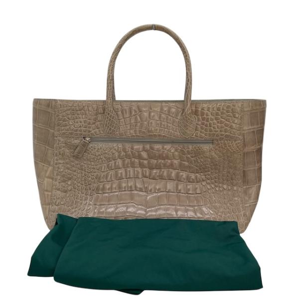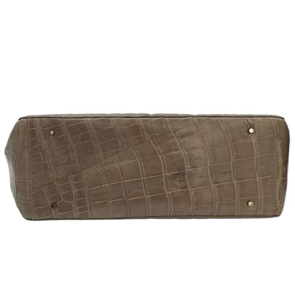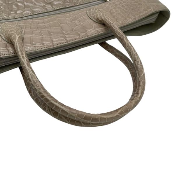 シャイニークロコダイル センター取り ワニ革 トートバッグ ハンドバッグ エキゾチックレザー ベージュ メンズ