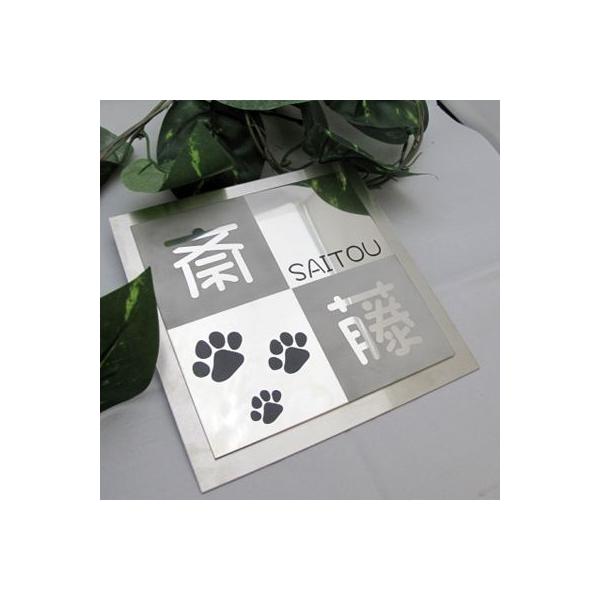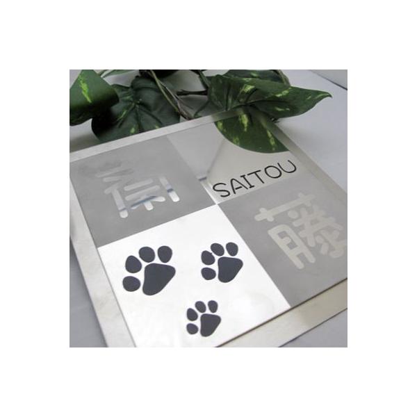 表札 ステンレス表札 オシャレな黒文字表札 肉球モチーフが可愛い!! 犬 猫