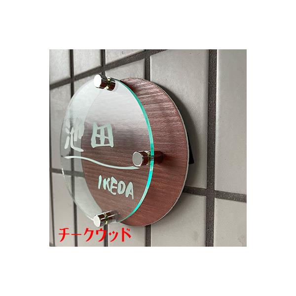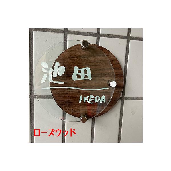 表札 丸型 120mm×120mm アクリル 二世帯可 立体 木目 レーザー加工 彫刻 校正3回無料