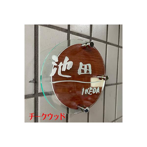 表札 丸型 120mm×120mm アクリル 二世帯可 木目 レーザー加工