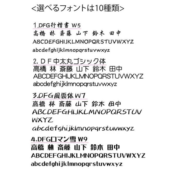 選べる10種類の書体と3カラー(ゴールド/シルバー/ピンクゴールド)