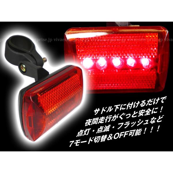 送料無料 訳あり特価! 自転車テールライト(1) リュック・ポケットなどにも装着可能 5LEDリアライト 赤レンズ 点灯点滅7モード レタパ