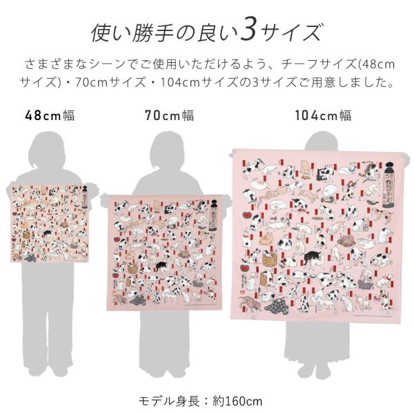 風呂敷 大判 チーフ 104cm 70cm 48cm 隅田川 浮世絵ふろしき 猫飼好五十三疋 (みょうかいこうごじゅうさんびき) 歌川国芳 20716-303 20718-206 20720-114