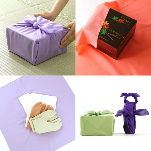 丈夫でシワになりにくいポリエステル素材の無地風呂敷。