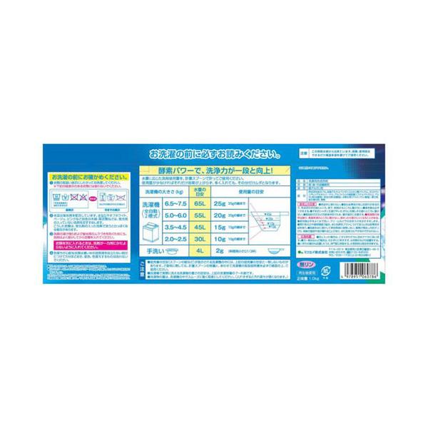 酵素で繊維の奥から汚れを分解。消臭成分、漂白剤、活性化剤配合。計量スプーン入り