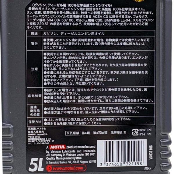 規格、承認:ACEA C3、BMW LL-04、MB229.51、PorschC30、VW504 00/507 00