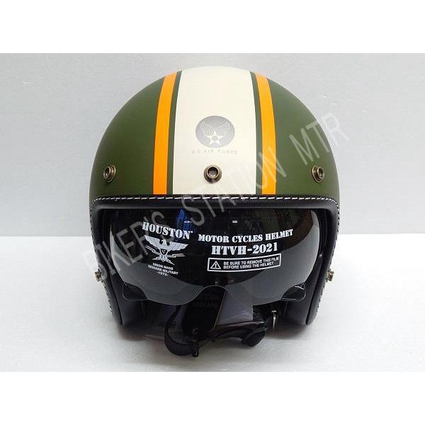 HOUSTON ヒューストン HTVH-2021 インナーバイザージェットヘルメット カーキーアイボリーオレンジ フリーサイズ パイロットジェットヘルメット JET HELMET