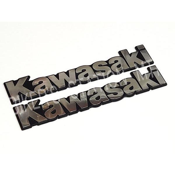 KAWASAKI カワサキ 純正 タンクエンブレム Sサイズ 全2色 クローム ゴールド kawasakiロゴ 2枚セット 立体エンブレム アルミエンブレム