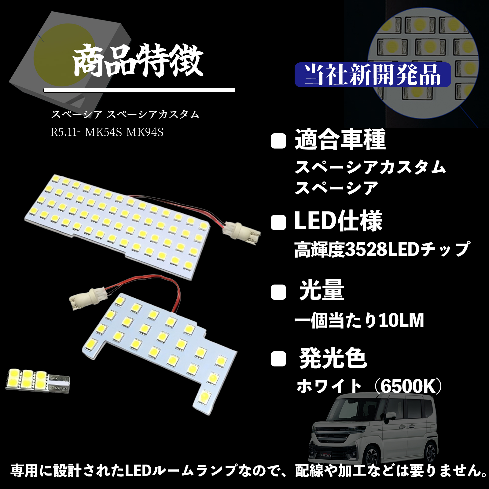 スペーシア スペーシアカスタム MK54S MK94S 専用設計 LED ルームランプ 室内灯 爆光 高輝度 ホワイト 6500K ledライト 5050SMD カスタムパーツ 取付簡単 WeCar