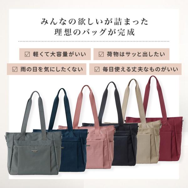 トートバッグ レディース 大きめ a4 軽い ポケット 仕切り 撥水 ショルダーバッグ 通勤 ファスナー ナイロン 斜めがけ 2way 大容量 4way ギフト 母の日 早割 夏
