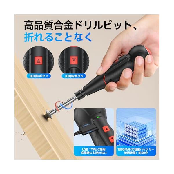 AAL 電動ドライバー 小型 携帯 手持ち Type-C USB充電式 人間工学設計 滑り止め 軽量 手動兼用 高輝度LEDライト 正逆転切り替え