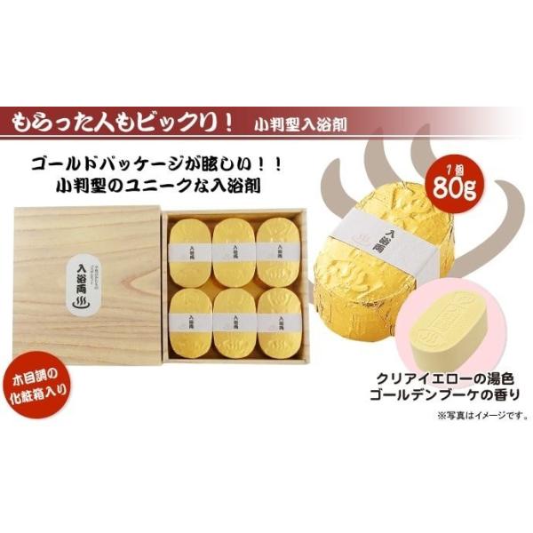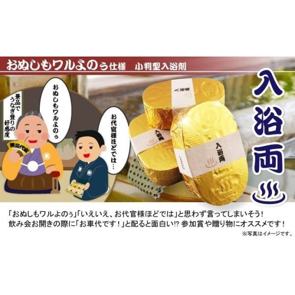 「おぬしもワルよのぅ」仕様の小判型入浴剤「入浴両」!木目調の化粧箱入りで縁起の良いゴールドパッケージが眩しい発泡タイプのバスボムセット!参加賞やちょっとした景品にオススメです。