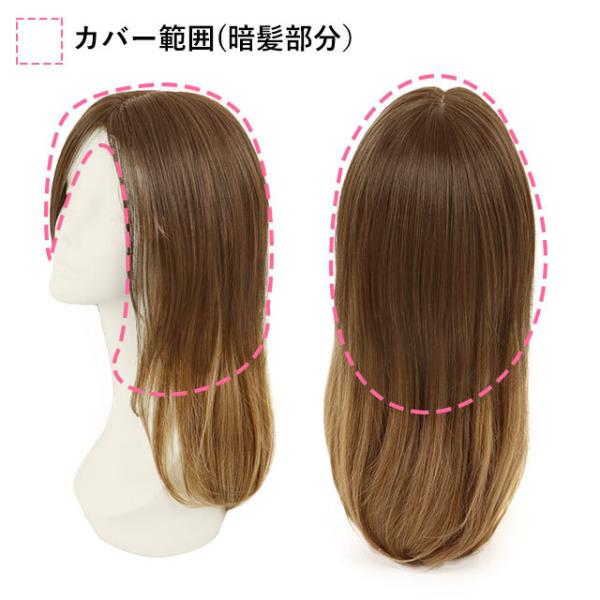 ヘアピース耐熱 プレミアム白髪隠しウィッグ (広範囲ワンレンロングタイプ) ウイッグ ST-011 薄毛隠し カバーピース 部分手植え シルクスキン
