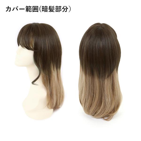 頭頂部を覆うように着ける、つむじの付いた前髪ウィッグ