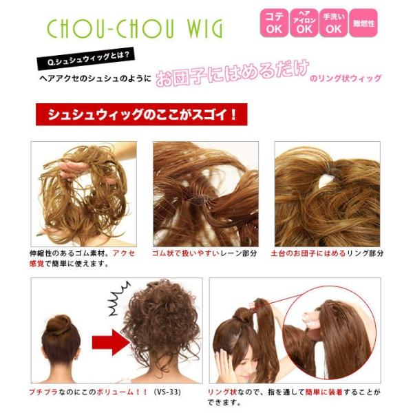 ヘアアクセのシュシュのようにお団子にはめるだけのリング状ウィッグ