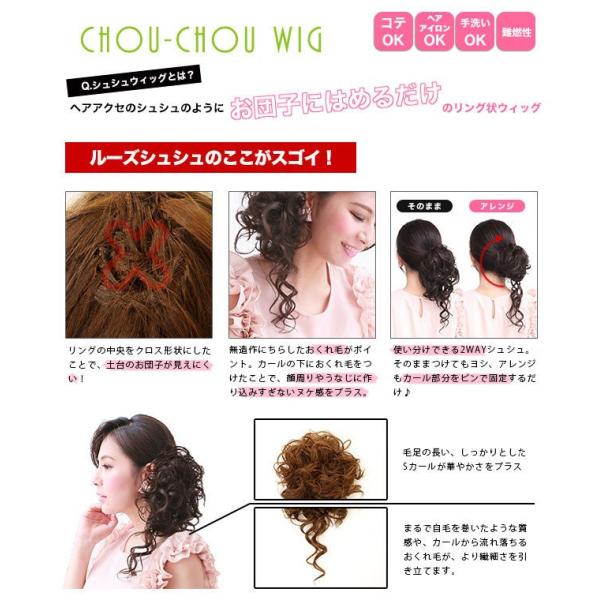 ヘアアクセのシュシュのようにお団子にはめるだけのリング状ウィッグ