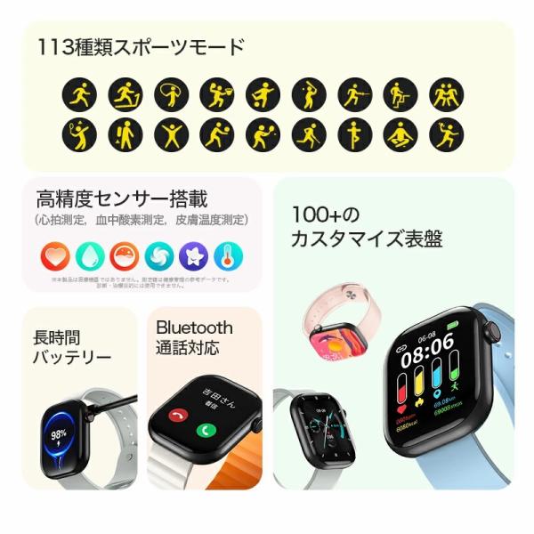 スマートウォッチ 2.08インチ大画面 Bluetooth5.4 24h健康管理
