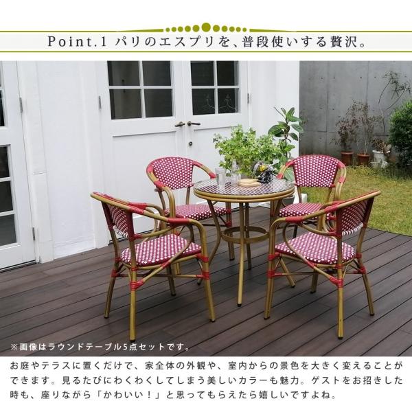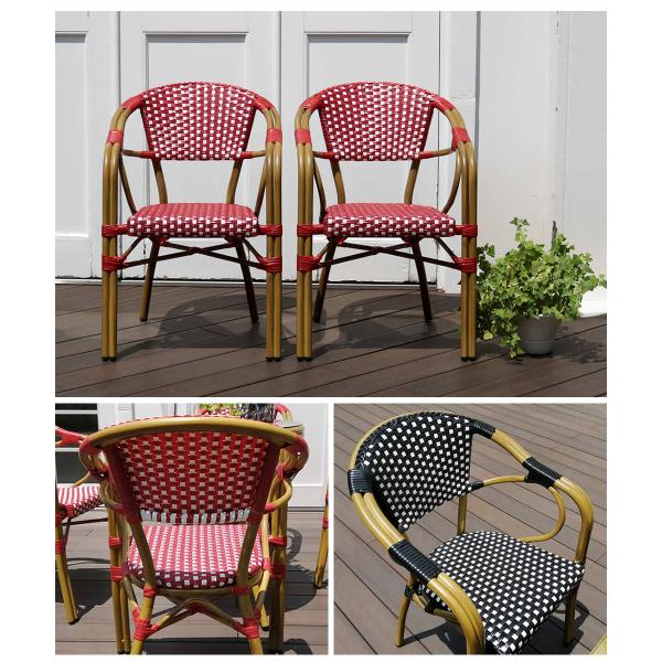 チェア 2脚セット アルミ製 椅子 ガーデンチェア テラスチェア スタッキングOK カフェチェア PEラタン ハンドメイド 店舗チェア パリジャンヌ オープンカフェ風