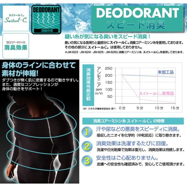 【1点までネコポス可】 クールコンプレッション クルーネック 長袖 ボディタフネス パワーストレッチ 接触冷感 消臭 シャツ インナー 春夏用 JW-623 爆買