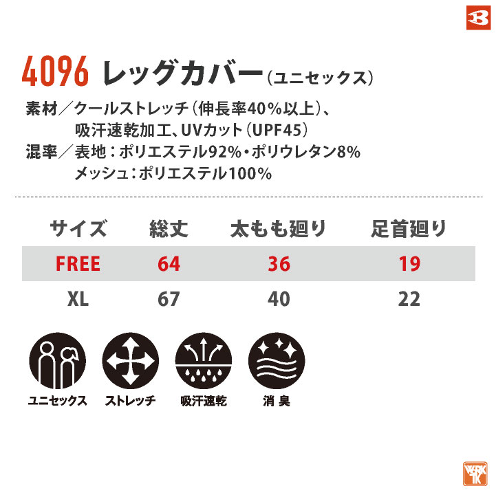 バートル レッグカバー ストレッチ UVカット ドライ 吸汗速乾 春夏 秋冬 年間対応 レッグインナー インナーパンツ BURTLE ネコポス 即日出荷 bt-4096