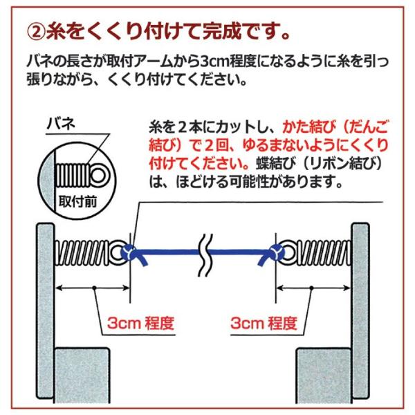 ●丈夫な糸を両端のバネで取り付けていますので、ゆるんだり切れたりすることがありません。