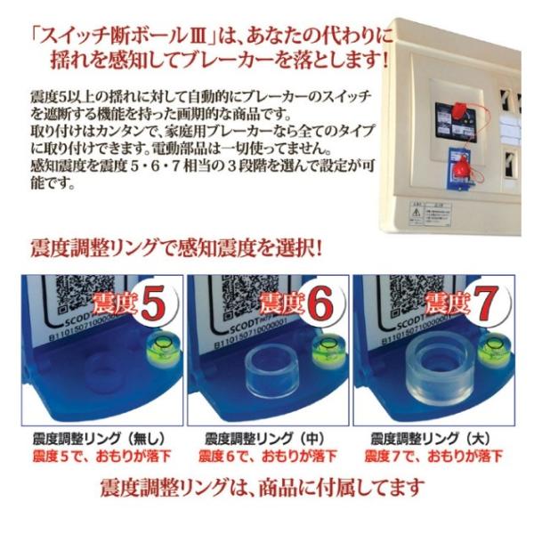 通電火災防止 震災対策 遮断装置 ブレーカー自動遮断 スイッチ断ボール3 震度5 6 7設定可能 転倒式 家庭用 避難用品 二次災害防止 日本製