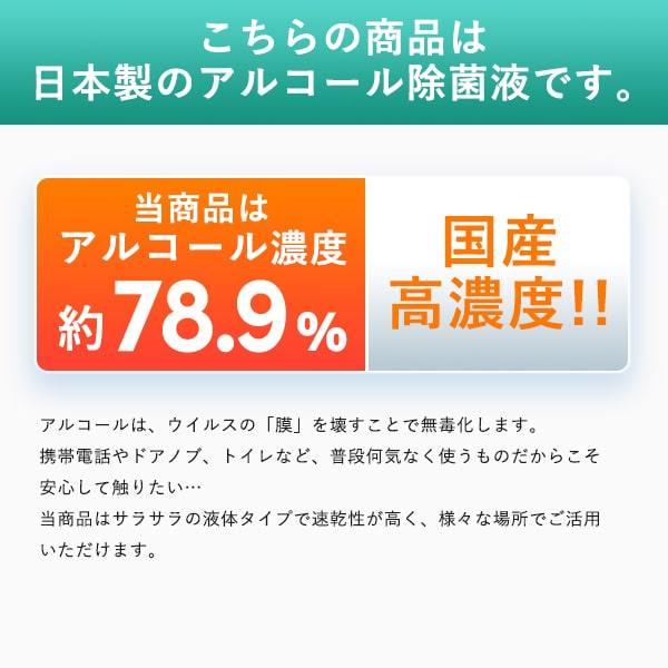 アルコール濃度が78.9%とウイルス除去に推奨される濃度です。