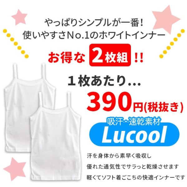 スクールインナー キャミソール 2枚組 女の子 女児 キッズ ジュニア 胸二重 ノースリーブ 丸首 インナーシャツ 下着 吸汗速乾 白