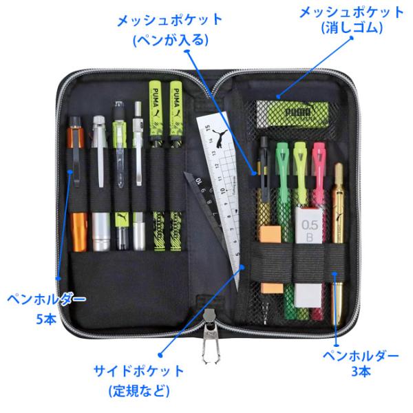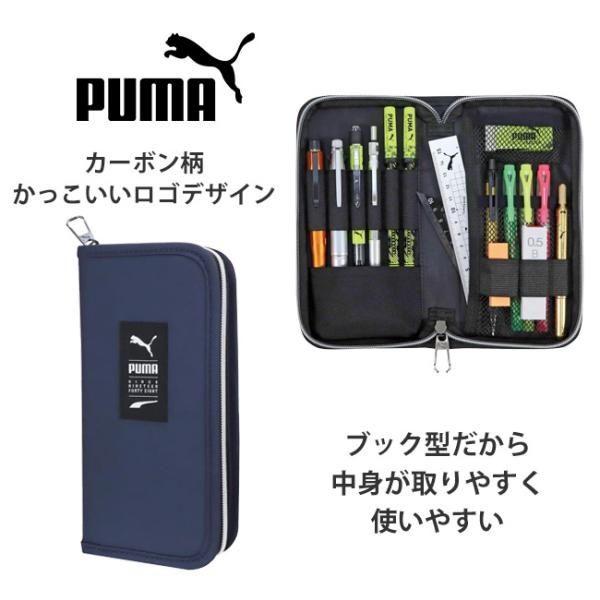 PUMA プーマ ペンケース ブックタイプペンケース 筆箱 ペン入れ 文房具 子供 男の子 かっこいい 大容量 おしゃれ 小学生 中学生 シンプル ロゴ ファスナー