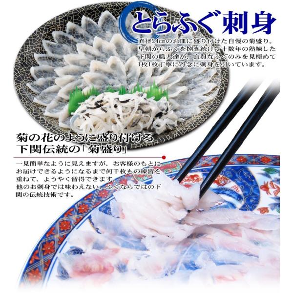 本場下関の職人が1枚1枚丁寧に丹念に捌いたとらふぐ刺身とふぐちりの豪華セット!父の日・お歳暮などのギフトにも喜ばれる山口県自慢の特産品です!