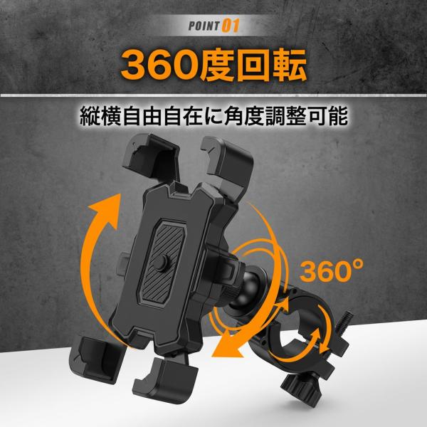 自転車 スマホホルダー / バイク スマホホルダー / スマホスタンド ハンドル / iPhone ホルダー / Android対応 / ワンタッチ固定 / 自動ロック式 / 360度回転 / サイクリング用品 / ツーリング用品