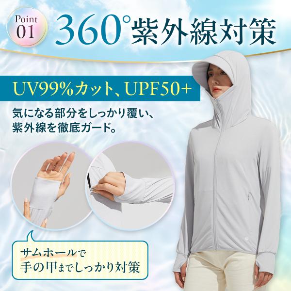 ラッシュガード レディース UVカット パーカー UPF50+ 冷感 指穴 水陸両用 取り外しバイザー付き 薄手 吸水速乾 日焼け対策 紫外線対策