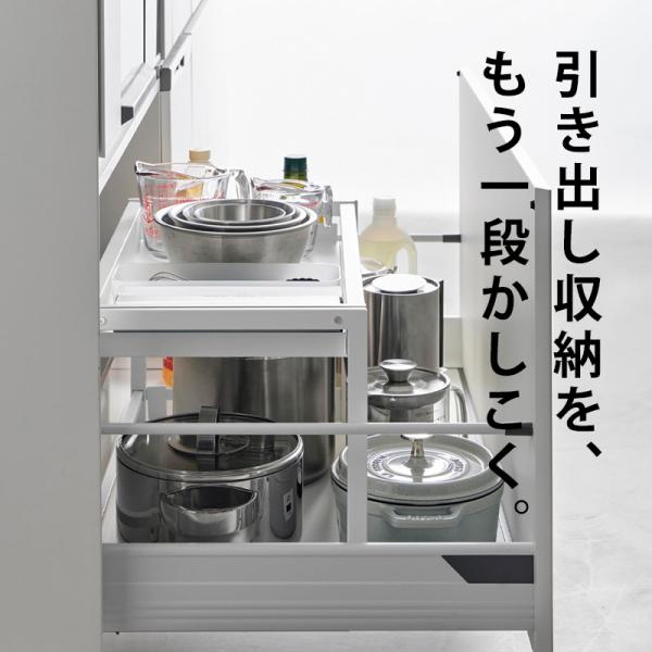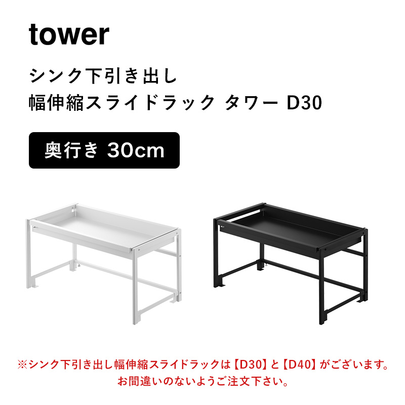 特典付 山崎実業 シンク下引き出し幅伸縮スライドラック タワー D30 tower 引き出し収納 フライパン収納 キッチン 公式 10356 10357 白 黒 新商品