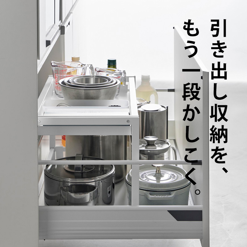 シンク下の引き出しスペースを、効率よく使えるスライドラック。