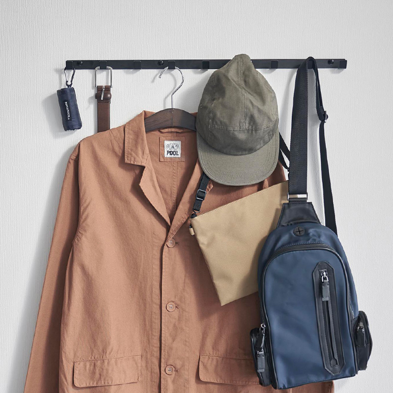 フックが9つあるのでこれ一つで小物や衣類などひとまとめにできます。