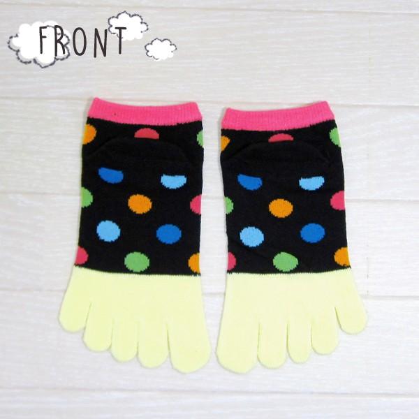 五本指ソックス[子供用キッズ靴下]16-22cm キャンディカラー★ドット柄 表糸綿100% キッズスニーカーソックス(26J)