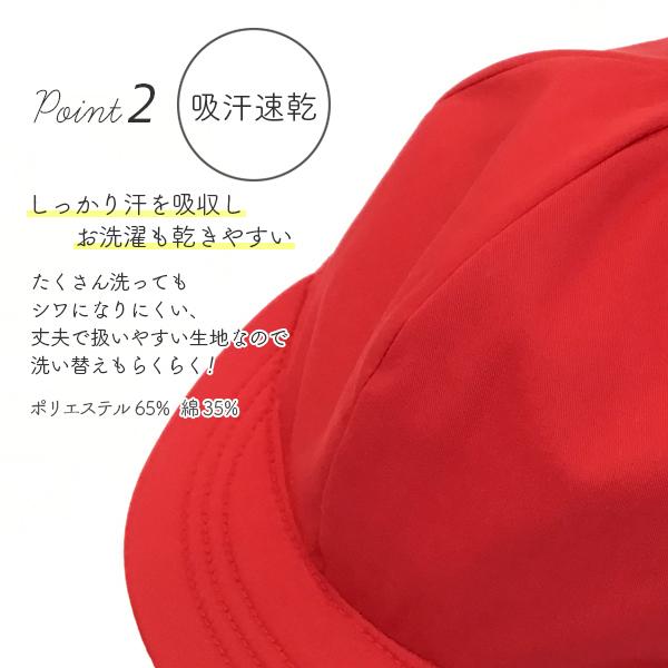 赤白帽子 Lサイズ 日本製 アゴゴム付 シワになりにくくて耐久性がある綿混/ポリ混素材 カラー帽子 両面仕様 赤色/白色 リバーシブル対応 [取寄対応商品] -1F-