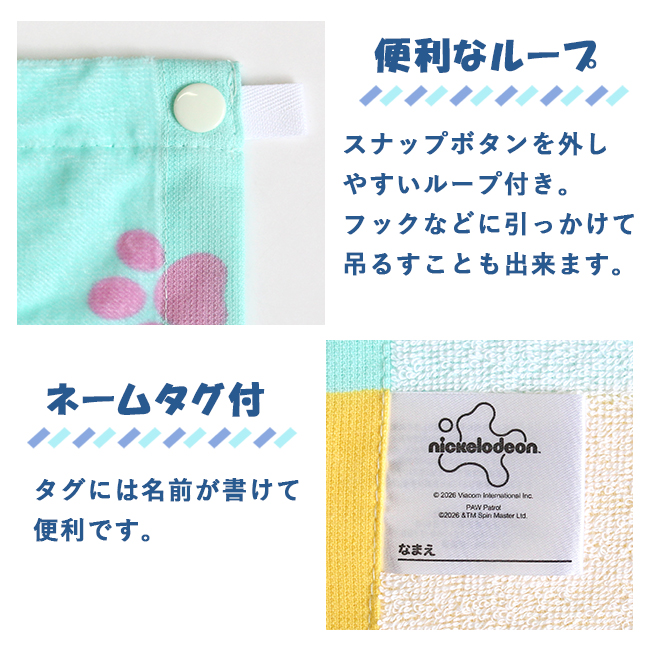 スナップボタンとギャザーで使いやすい キャラクター 巻きタオル