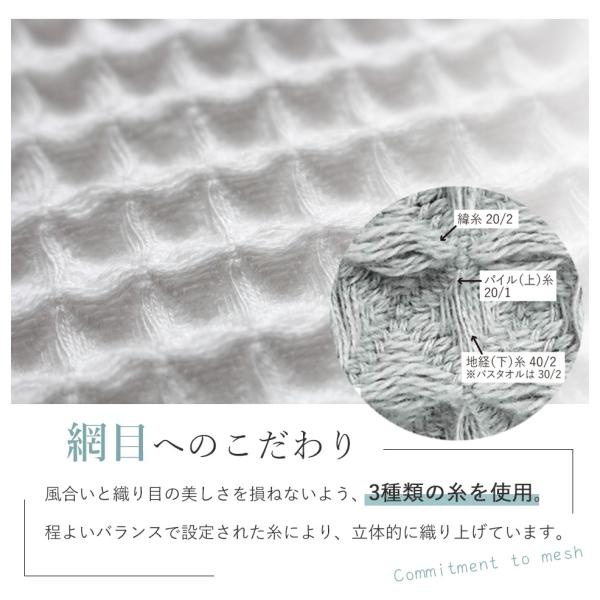 ◎ワッフル菓子が由来のワッフル織は適度な厚みとデコボコが作り出すさらりとした肌触りが特長です