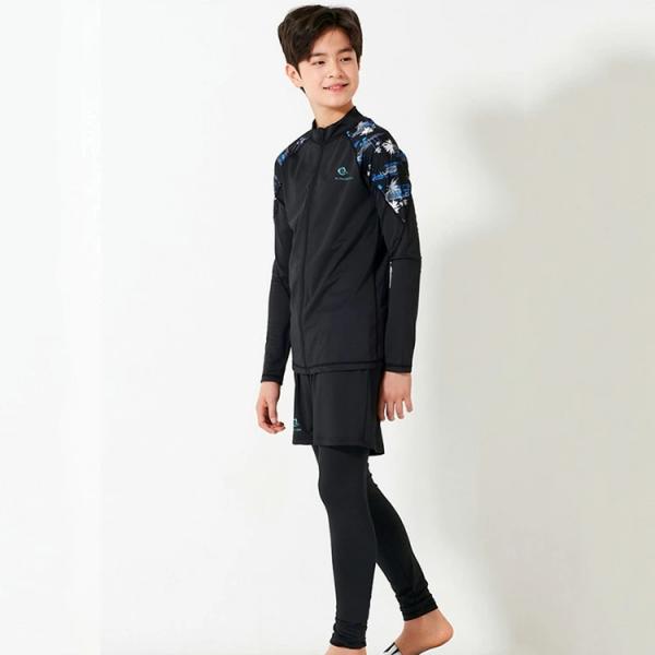 スクール水着 セパレート 長袖 男子 上下セット 大きいサイズ 男の子 水着 小学生 中学生 3点セット 長袖長ズボン レギンス スイムキャップ ハーフパンツ 170