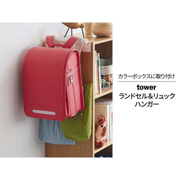 山崎実業 tower タワー カラーボックス横 ランドセル&リュックハンガー ホワイト 5316 | ランドセルラック 小学生 ランドセルハンガー