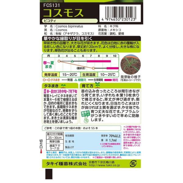 花種 NL200 コスモス ピコティ 小袋 [FCS131]【花の種】【タキイのタネ】【ガーデニング】