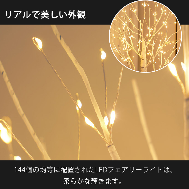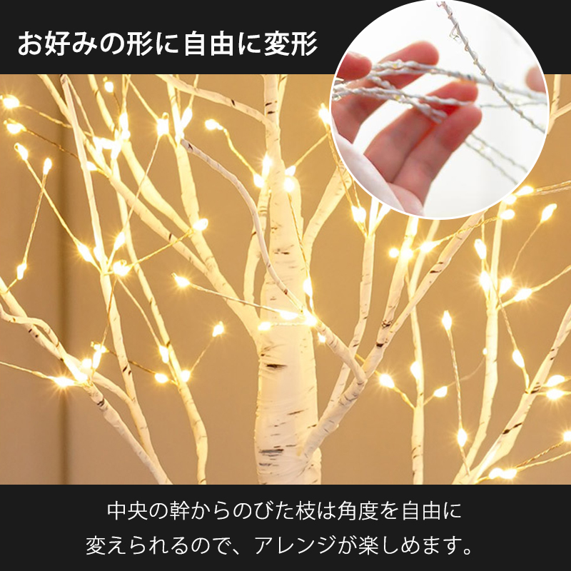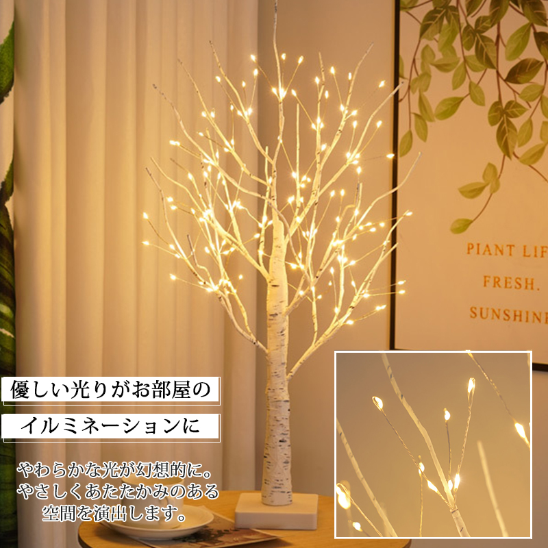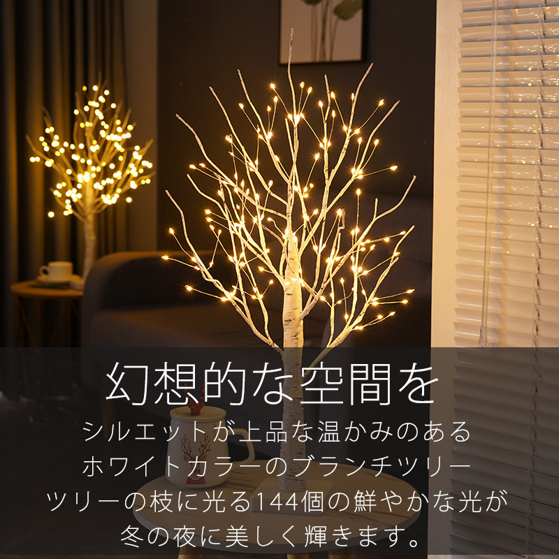 超PayPay祭 ブランチツリー クリスマスツリー 60cm 卓上 北欧ブランチツリー 144LED付き 枝ツリー 白樺ツリー イルミネーション 飾りタイマー機能 USB式 電池式