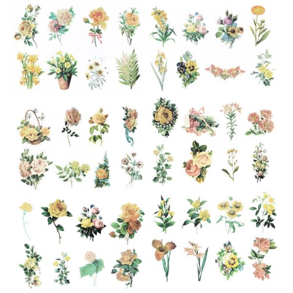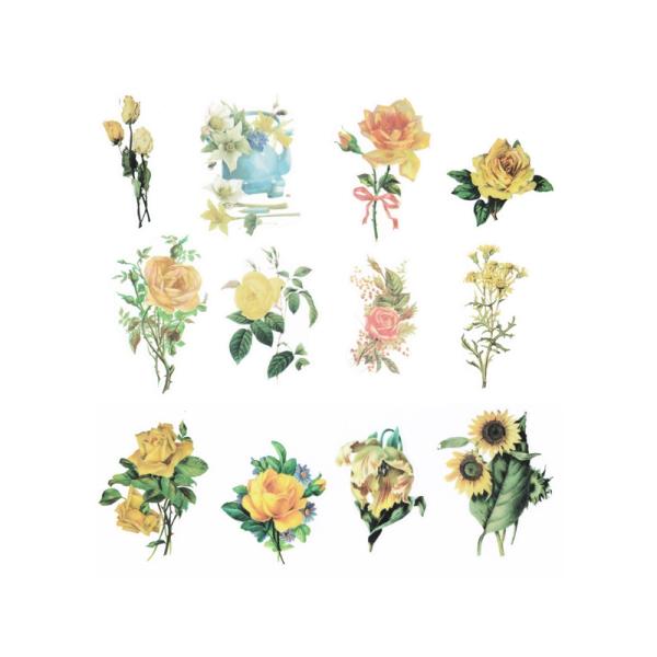 フレークシール セット スクラップ素材 レトロフラワーシリーズ (オレンジ×イエロー) PET素材